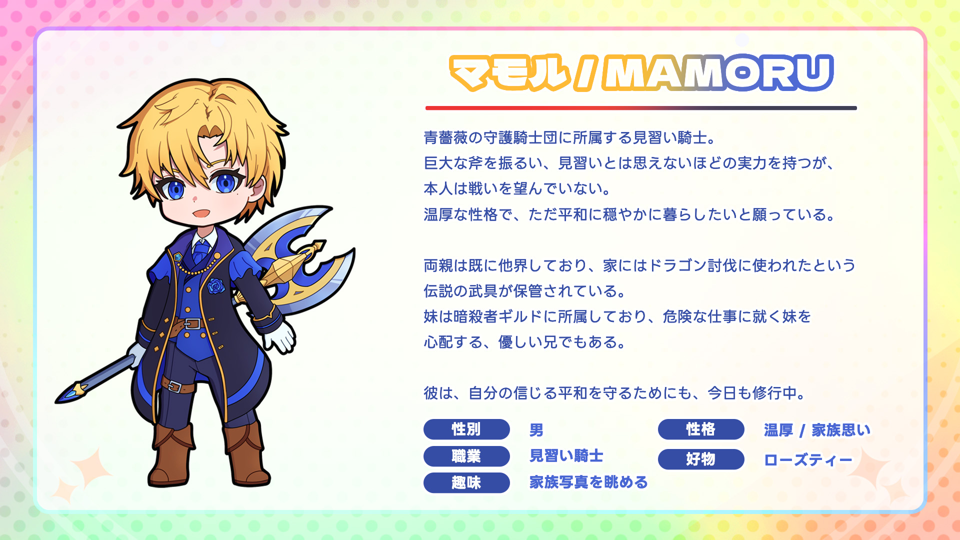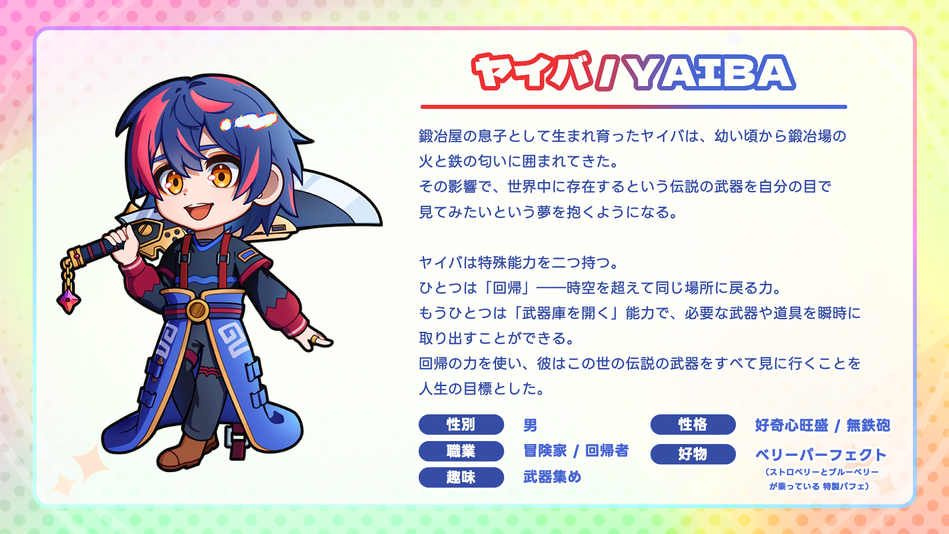 カードのQRコードを読み取ると、このようなキャラクターの設定資料が表示されます