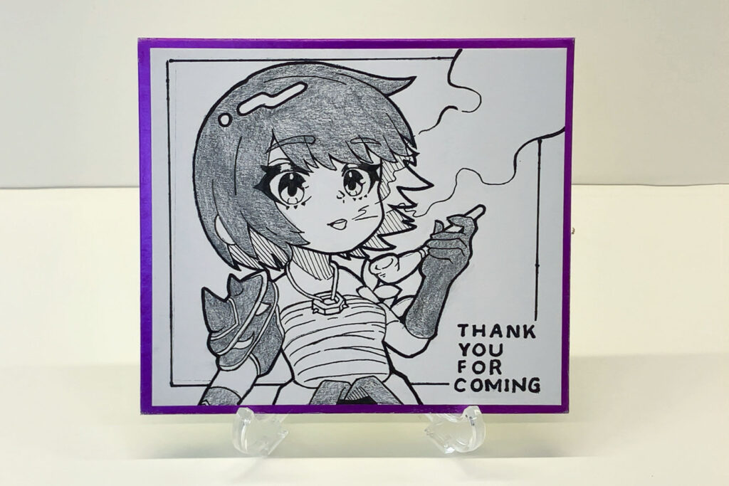 アナログで描いた作品を展示に加えたいと考え制作した色紙です。